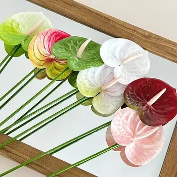 2026 Factory Wholesale 3D Printed Artificial Anthurium Flower Artificial Green Plant Artificial Flower Wedding Decoration